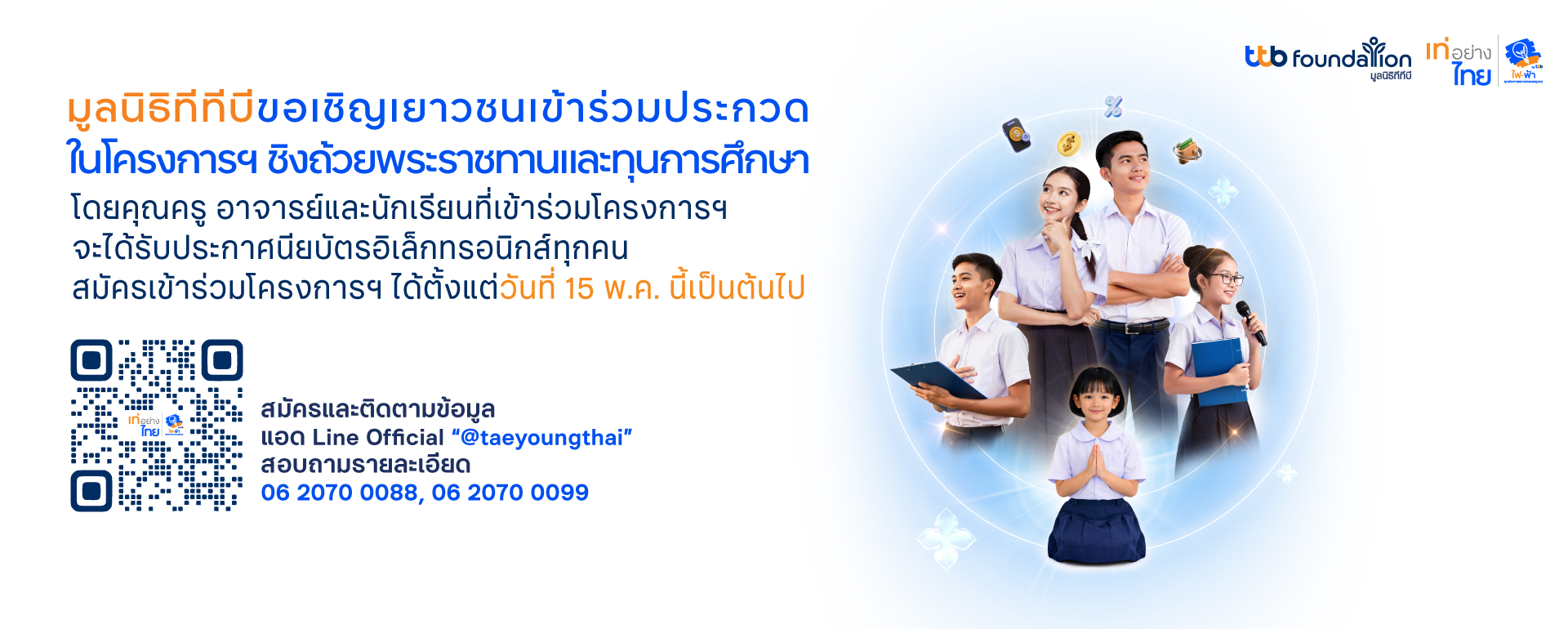 มูลนิธิทีทีบี เปิดเวทีเพื่อจุดประกายให้เยาวชนร่วมกันอนุรักษ์ไว้ซึ่งเอกลักษณ์ไทย ทั้งมารยาทไทย ทักษะการอ่าน-พูด ภาษาไทย และร่วมกันจุดประกายทางความคิดให้เยาวชนได้รวมทีม ร่วมกันคิดสร้างสรรค์โครงงานเพื่อรณรงค์ต่อด้านการบูลลี่ภายในสถานศึกษาอย่างยั่งยืน ภายใต้โครงการ "เท่อย่างไทย โดย ไฟ-ฟ้า ทีทีบี" ชิงถ้วยพระราชทานสมเด็จพระกนิษฐาธิราชเจ้า กรมสมเด็จพระเทพรัตน ฯ ราชสุดาสยามบรมราชกุมารี และทุนการศึกษามายาวนานกว่า 50 ปี